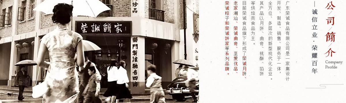 廣東榮誠食品有限公司是一家集研發、生產、銷售于一體的現代化食品企業。主要生產月餅、粽子、潮膳、曲奇、蛋卷、鳳梨酥、蛋黃酥、腐乳餅、面包、蛋糕等一百多個食品品種榮誠深耕食品行業,在產品研發、品牌文化、產品質量、包裝創新、人才團隊營銷網絡等方面逐漸建立起核心競爭優勢,旗下創立了榮誠月餅、老家潮汕、榮誠和粽、榮誠餅家、榮誠曲奇、至愛優品等幾大品牌,品牌美譽度連年提升其中“榮誠月餅”已躋身國內月餅行業前茅,產品暢銷全國各地。