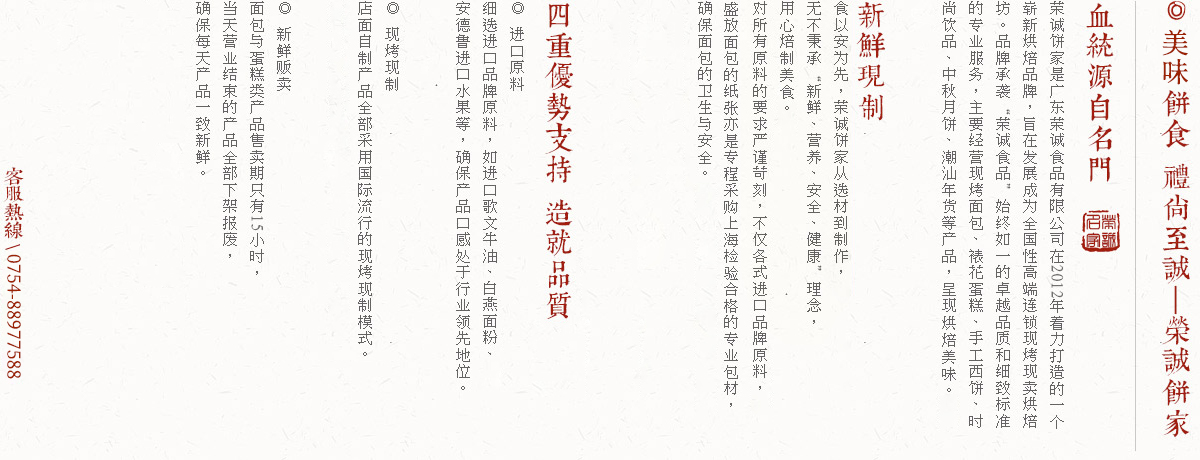 致力于打造全國連鎖性經(jīng)營的高端現(xiàn)場烘焙面包房!榮誠餅家--美味餅食,禮尚至誠