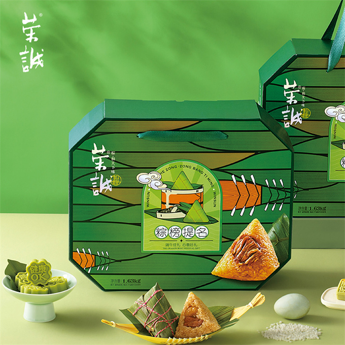 【編 碼】 HZZ2403 【條形碼】 6925755536465 【尺 寸】 38x31x11.5cm 【凈含量】 1.63kg 【規 格】 1.63kgx6盒/箱 【內容物】  100g經典肉粽x2,100g板栗肉粽x2,100g豆沙粽x2,100g蜜棗粽x2,100g紫米板栗粽x2,60g咸鴨蛋(熟)x6,30g滋芯綠豆糕(海鹽檸檬味)x4,25g狀元糕(海鹽芝士味)x6