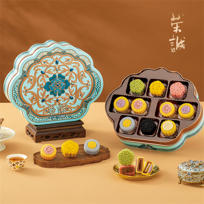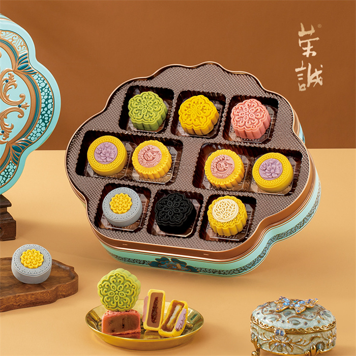 【編 碼】 YBT2411 【條形碼】 6925755562488 【尺 寸】 35x29x7.5cm 【凈含量】 600g 【規(guī) 格】 600gx8盒/箱 【內(nèi)容物】  60g桃山皮月餅(雪媚娘檸檬卡曼橘)x2,60g桃山皮月餅(豆蓉香橙檸檬)x2,60g桃山皮月餅(五黑腰果)x1,60g桃山皮月餅(五黑巴旦木)x1,60g紅茶桂圓月餅 x1,60g豆蓉斑斕月餅x1,60g豆乳黑麥月餅x1,60g蛋黃白蓮蓉月餅x1