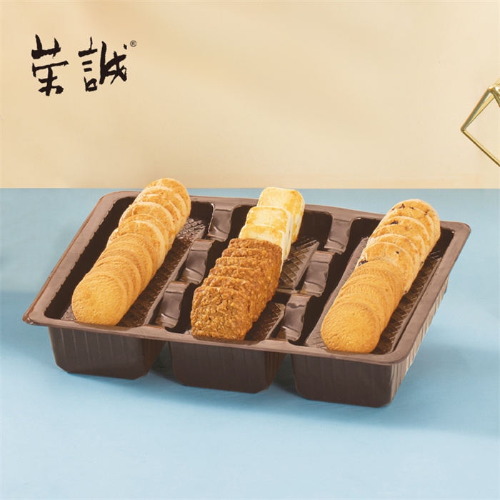 【編 碼】 CGT2503 【條形碼】 6925755535130 【尺 寸】 33x22x13cm 【凈含量】 744g 【規 格】 744gx6盒/箱 【內容物】 30g香妃鳳梨酥x3,15g燕麥拿鐵方塊脆x6,10g香焙蔓越莓酥x12,8g原味奶油曲奇x12,10g香焙杏仁酥x8,8g迷你黑麥紅茶酥x8,13.5g澳式金泊雞蛋卷(芝麻原味)x8,12g蔥香卡拉棒x8