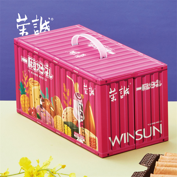 【編 碼】 CGZ2506 【條形碼】 6925755536809 【尺 寸】 32x16x16cm 【凈含量】 468g 【規 格】 468gx12盒/箱 【內容物】  13.5g澳式金泊雞蛋卷(芝麻原味)x12,13.5g澳式金泊雞蛋卷(咸蛋黃)x6,13.5g澳式金泊雞蛋卷(海苔)x6,10g香焙花生酥x4,10g香焙蔓越莓酥x4,8g原味奶油曲奇x4,8g巧克力味曲奇x4